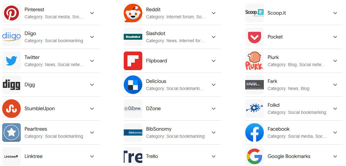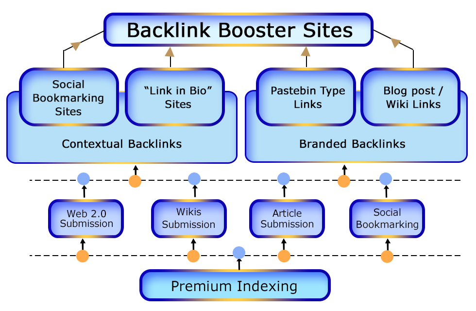 Backlink Booster Sites such as Social Bookmarking Sites, 'Link in Bio' Sites, Pastebin Type site